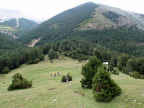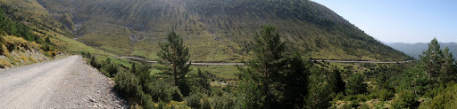 La pista en si no te maça complicacions: son uns 12 km de pujada continua i constant, uns 1000 de desnivell des de Nerin (on ja portavem uns 200 mts més de pujada). No te grans desnivells i poc a poc va enfilant-se per la vesant sud d’aquesta serra de las Cutas. Anem esperant-se per a reagrupar-se i a mitja pujada parem a fer-se el primer bocata baix d’uns abets. Les ombres no son maça presents ja a aquestes alçades i quan més alt, menys ombres, i la calor es deixa sentir. Les vistes de la Vall amb Nerín i Fanlo per baix son fantàstiques.