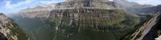 Seguim la pujada fins a un lloc on la pista fa una petita baixada i de repent, al nostre costat es descobreix un dels paisatges més impresionants que mai he vist: El canó de la Vall d’Ordesa. El mirador es troba al borde del camí i la vista abarca tota la vall, des de la Pradera d’Ordesa fins les grades de Soaso i el Circ i la vista es realment espectacular, com podeu veure a les fotos, que realment no fan justicia del que es sent estant allí mateix. Després una bona estona empapant-se del paisatge continuem perque volem arribar a un parell de miradors més: El mirador de la Brecha i el de Cotatuero.
