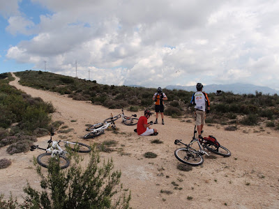 Al poc de temps arribem a la rampa de la Martina i xino xano xarraeta “en mano” (es que rima :-P) anem pujant. Primera paradeta a mirar el paisatge i a seguir per la pista, desviament a fer un tramet de senda i de nou a la pista que pareix que no acaba mai i que va arrimant-nos cap al Migjorn.Finalment passem la baixada de Tibi i després d’un bon repetxó arribem al Cabeçó Redó on s’acaba la pista i comença el “bicimuntanyisme“.