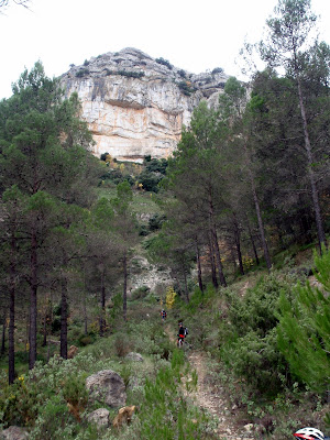 En aquest punt i després de diversos canvis de temperatura fred – calor ja no hi ha canvi: fa un fretorro que talla el pixorro amb molt de vent. Aixi que ens despedim apresuradament de Nando que es retira en aquest punt, proteccions i canvi de roba i ràpidament cap a baix. En quant ens resguardem del vent, la temperatura millora, i per la senda aquesta molt divertida arribem al Racó Llobet i baixem una mica de pista per a buscar la Fonteta del Xop. Menjem una mica i jo tinc la panxa prou xunga de flatulències, menys mal que la parada em senta de p.m. i puc buidar els sobrants gaseosos per dalt i baix.