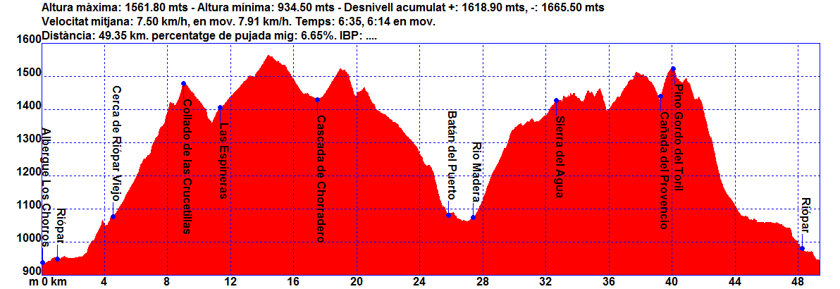 - Ruta Rio Madera: Riópar – Collado de las Crucetillas – El Chorradero – Batán del Puerto – Rio Madera – Cañada del Provencio – Pino Gordo del Toril – Riópar. Track. Track original de Pura Vida amb alguna petita variació de Andres de las Liebres de Yecla.