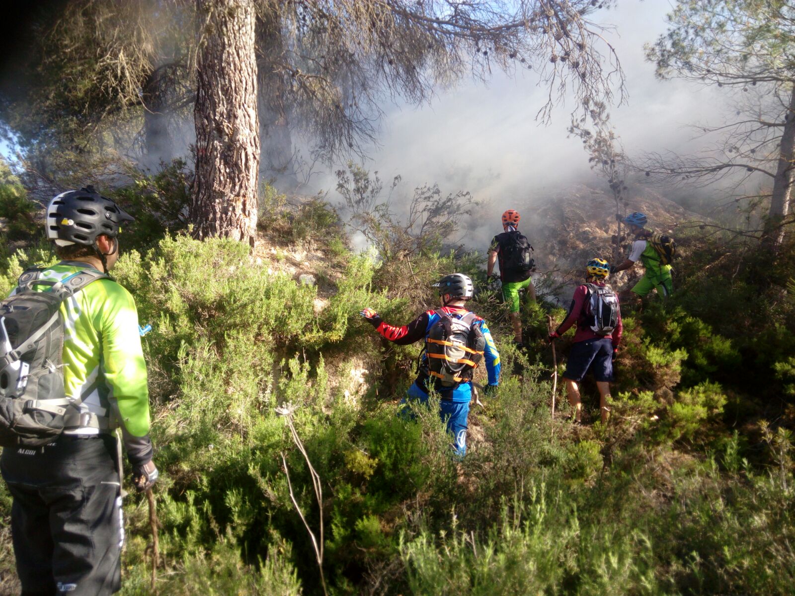 El passat dissabte dia 6 de Maig, la secció BTT del Centre Excursionista Alcoi es disposava a realitzar una ruta per Mariola quan, cap a les 9:00 del mati passant per les rodalies de l’alberg caní, es varen adonar que al costat de la carretera que condueix al paratge del preventori hi havia foc. De seguida varen intentar trucar al 112, però la cobertura a la zona es pràcticament inexistent, així que mentre un dels components es va dirigir a l’alberg caní per trucar d’un fixe, els altres ens varen dirigir cap al foc.